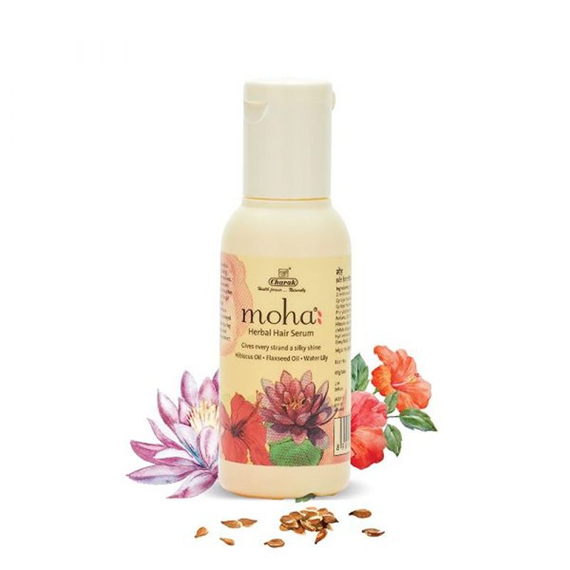 Never let frizz give you a bad hair day! moha: Herbal Hair Serum keeps every strand looking shiny and feeling silky, from one wash to the next. It has Flaxseed Oil, which is rich in nutrients and reduces clumping of strands. Hibiscus Oil nourishes the hair, while Water Lily has hair conditioning effect.