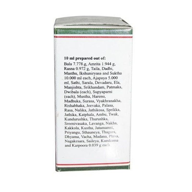Kairali’s Bala Thailam Ayurvedic oil is an effective combination of Ayurvedic herbs like Bala, Amrita and Rasna that helps in the treatment of rheumatoid disorders and various neurological diseases. It is most renowned Ayurvedic oil for the treatment of rheumatoid arthritis, osteo arthritis, gout and other disorders related to joints.