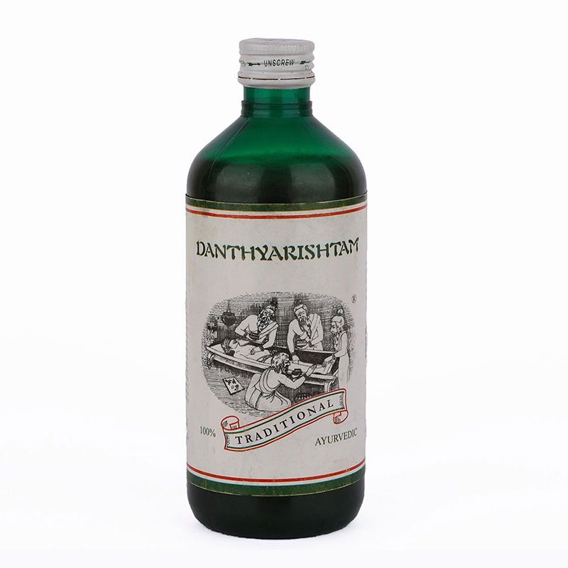 Danthyarishtam or Dantyarishta is a herbal liquid formulation of various potent Ayurvedic herbs, used to balance Kapha and Vata Dosha. Dantyarishta is not suitable for people with aggravated Pitta Dosha. It is a useful Ayurvedic medicine mainly used for the treatment of piles (non-bleeding piles), constipation, gastric problems, skin diseases, cardiac complaints, spleen and liver-related diseases.