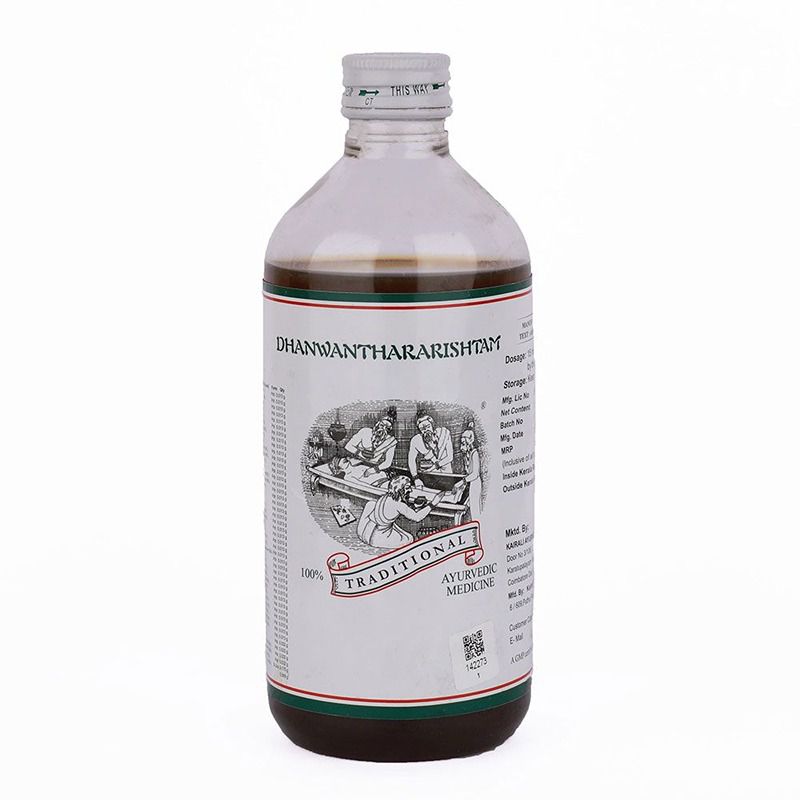 Dhanwanthararishtam (Dhanvantararishtam) is an authentic fermented herbal combination known in the name of Lord Dhanwantari which has its therapeutic effect in almost all systemic disorders. It has incredible carminative, anti-inflammatory, analgesic, diuretic, vasodilator and antipyretic medicinal properties that help to treat all Vata disorders like rheumatic complaints and nervous diseases. It helps to improve overall health and an excellent medicine for gastro and abdominal discomforts like anorexia, loss of appetite, indigestion, constipation, flatulence, gastric irritation, abdominal pain, heartburn, fistula, hernia and piles.