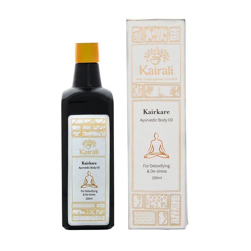 Kairalis Kairkare Ayurvedic body massage oil is manufactured with more than 40 essential Ayurvedic herbs. It helps to invigorate the body by eliminating toxins and detoxifying the body. This massage oil absorbs deep into the body that nourishes the skin and muscle tissues. It improves the blood circulation in the body, relieves stress and relaxes the body. This herbal massage oil also improves the texture of the skin and keeps you stay fit and healthy.