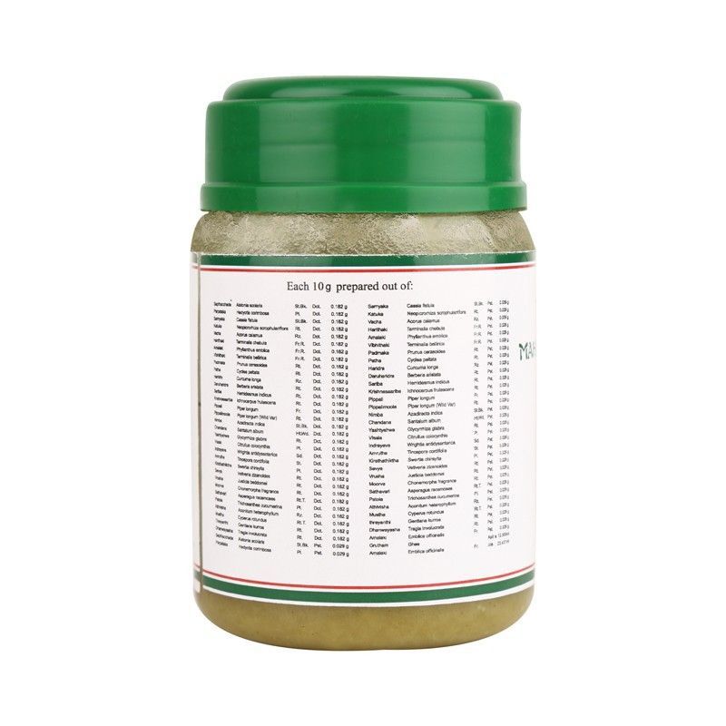 It is mainly aimed to treat all skin, bones and blood related diseases. It is highly effective in skin diseases like boil, rashes and pus discharge. Maha Thiktham Gritham also assists in the treatment of hyperacidity, jaundice, gout, chronic fever and bleeding piles. Preparation of any medicinal ghee requires 3 basic components- a liquid (Drava), a mixture of herbs/drugs (Kalka) and Ghee (Sneha Dravya). It is then prepared by boiling the herb paste in the ghee. This is done so as the ghee can absorb all the benefits of the herbal paste and acquire medicinal properties. This particular gritham is made from more than 30 types of herbs to achieve the final mixture.