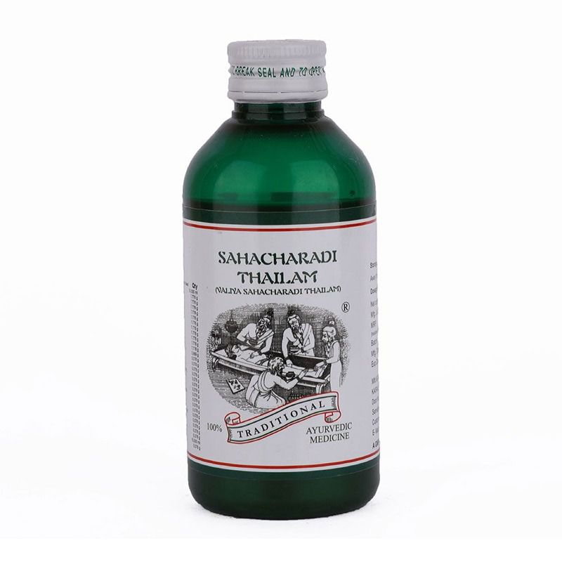 A versatile medicated oil with herb Sahchara, as major ingredient, treats Rheumatic disorder affecting the lower limb. Lower back ache, Sciatica, numbness and tingling sensation of lower limbs are well treated with appropriate mode of application of Sahacharadi Thailam. As a preventive measure, it could also be used regularly by patients who once had an attack of Rheumatism, to check the recurrence and further progress of the disease.