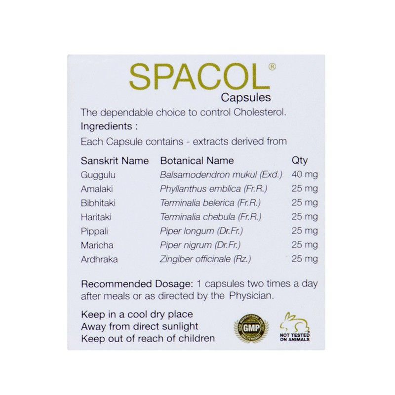 Spacol balances the fat metabolism and balances of the kapha dosha of the human body. It is a completely safe and herbal way to regulate cholesterol levels and promote complete cardiovascular health.