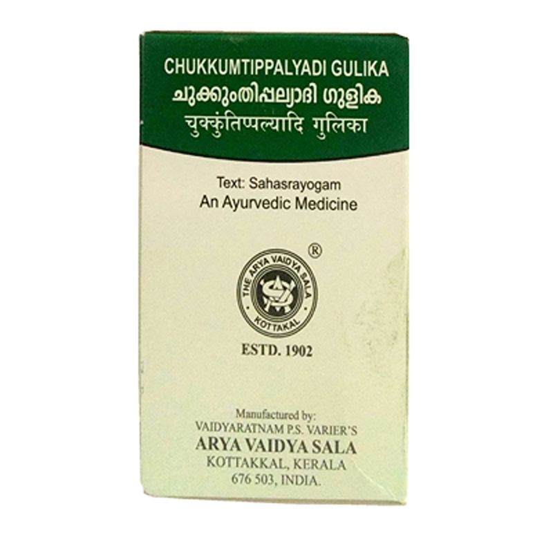 Chukkumthippalyadi Gulika is an Ayurvedic medicine used in treatment of fever. It is in tablet form. This medicine is formulated based on Kerala Ayurveda principle.