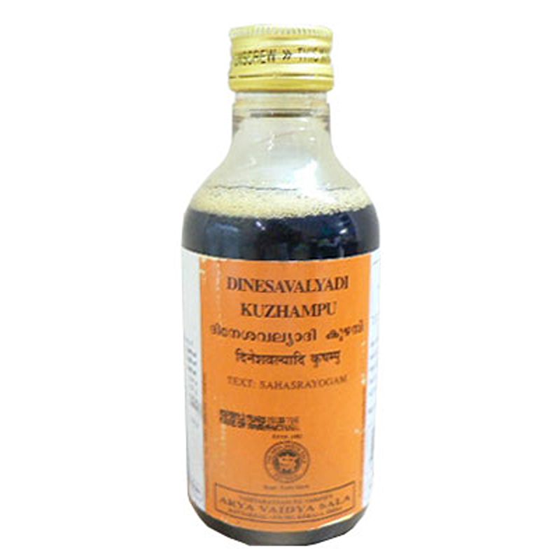 Dinesavalyadi Kuzhampu is an Ayurvedic oil used for external application to remedy eczema. This herbal oil acts as a skin tonic and detoxifier. It also helps wounds to heal faster and balances both Pitta and Kapha Dosha.