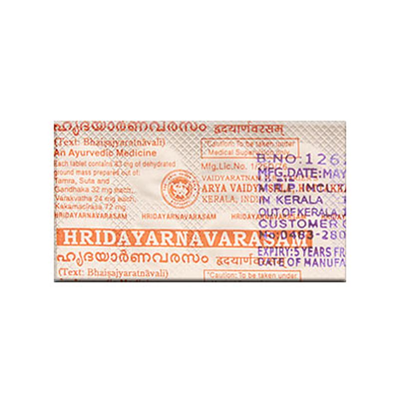 Hridayarnava Rasa is an Ayurvedic medicine in tablet or powder form. It is used in the treatment of heart diseases associated with heaviness of chest and dspnoea etc. This medicine contains heavy metal ingredients, hence should only be taken under strict medical supervision.