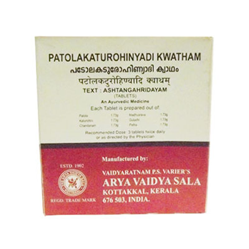 Also available in tablet form, called Patola Katurohinyadi Kashayam tablet or kwatham tablet.