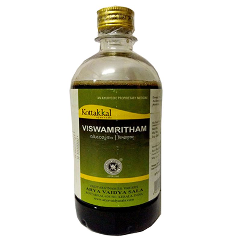 Viswamritam is used for the treatment of Grahani, Diarrhea, Poor digestion, Anorexia and Ama jwara conditions. It is a proprietary Ayurvedic medicine, manufactured by Arya Vaidya Sala, Kottakkal.Viswamritam is an herbal liquid formulation.