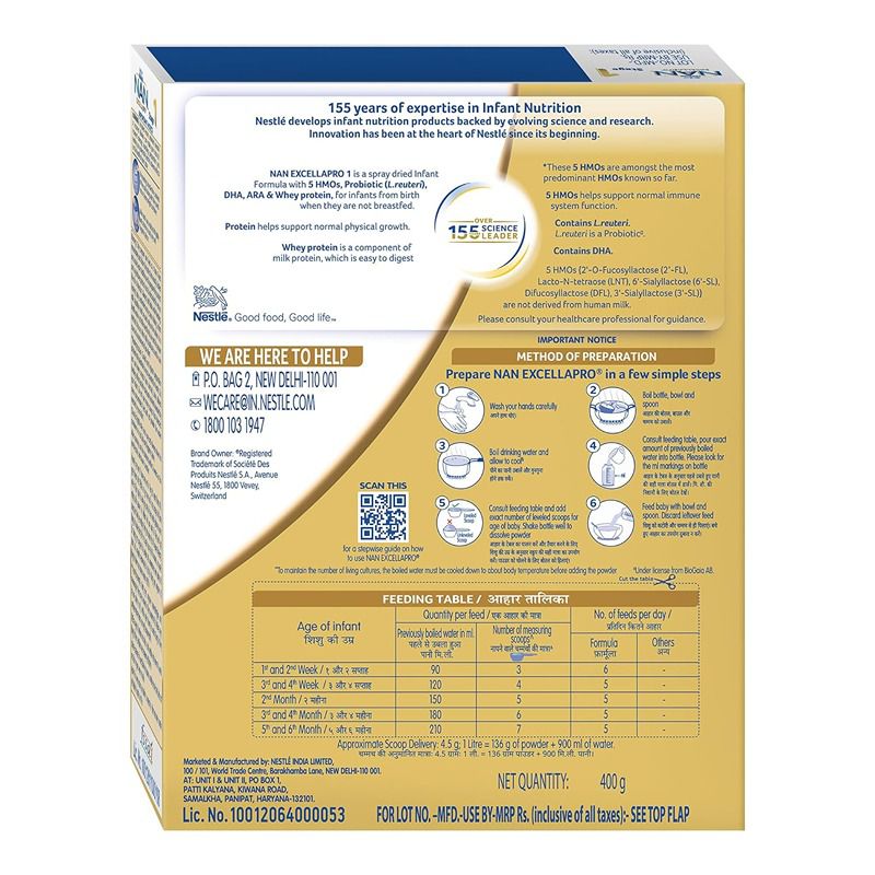 Nestle Nan ExcellaPro Stage 1 Infant Formula Milk Powder With HMOs & Probiotic For Babies Upto 6 Months – 400 gm