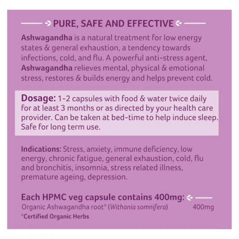 Organic Ashwagandha root* (Withania somnifera) 400mg