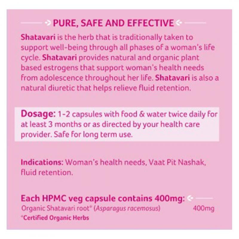 Womens Health (Natural estrogens), Womens Health Shatavari is the herb that is traditionally taken to support well-being through all phases of a womens life cycle. Shatavari provides natural and organic plant based estrogens that support womens health needs from adolescence throughout her life. Shatavari is also a natural diuretic that helps relieve fluid retention.