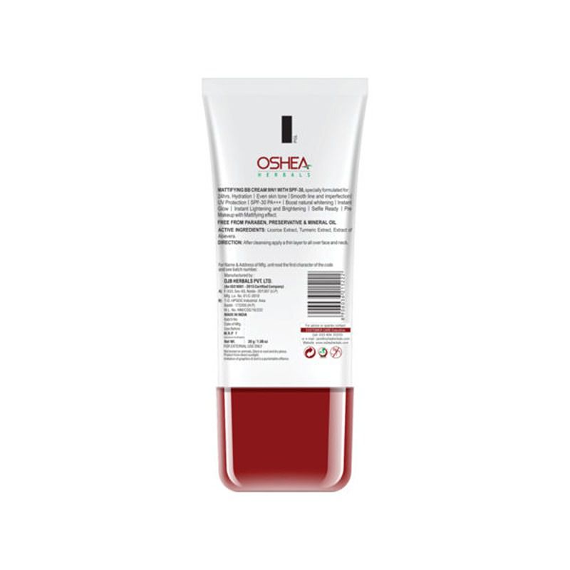 Oshea Herbals BB 9-In-1 Mattifying Cream with SPF 30 PA+++ provides instant glow, 24 hrs hydration, evens skin tone, hides lines and imperfections, boosts natural whitening and provides instant lightening and brightening, making you selfie-ready.