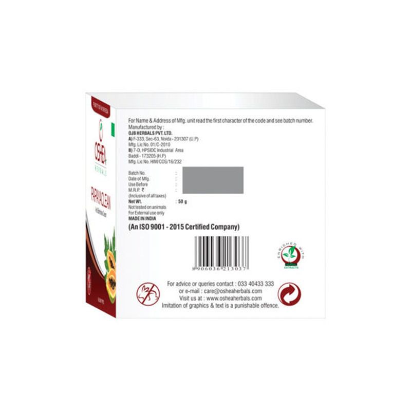 Wash the face with Oshea Papayaclean Face Wash followed by Rosefresh Skin Toner. Apply a generous amount of this cream. Give a gentle massage in the problem areas, allowing it to penetrate into the skin. For best results, use Papayaclean face pack twice a week and this cream twice a day.