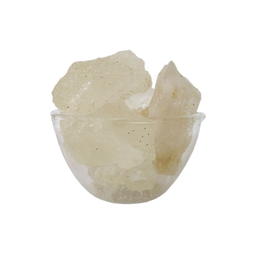 Alum is colorless in crystal form, 100 % pure alum block will be completely translucent. Alum is easily soluble in water and when heated it becomes porous. Alum has astringent, antiseptic, antihemorrhagic, and antibacterial properties making it very effective for treating many skin problems.